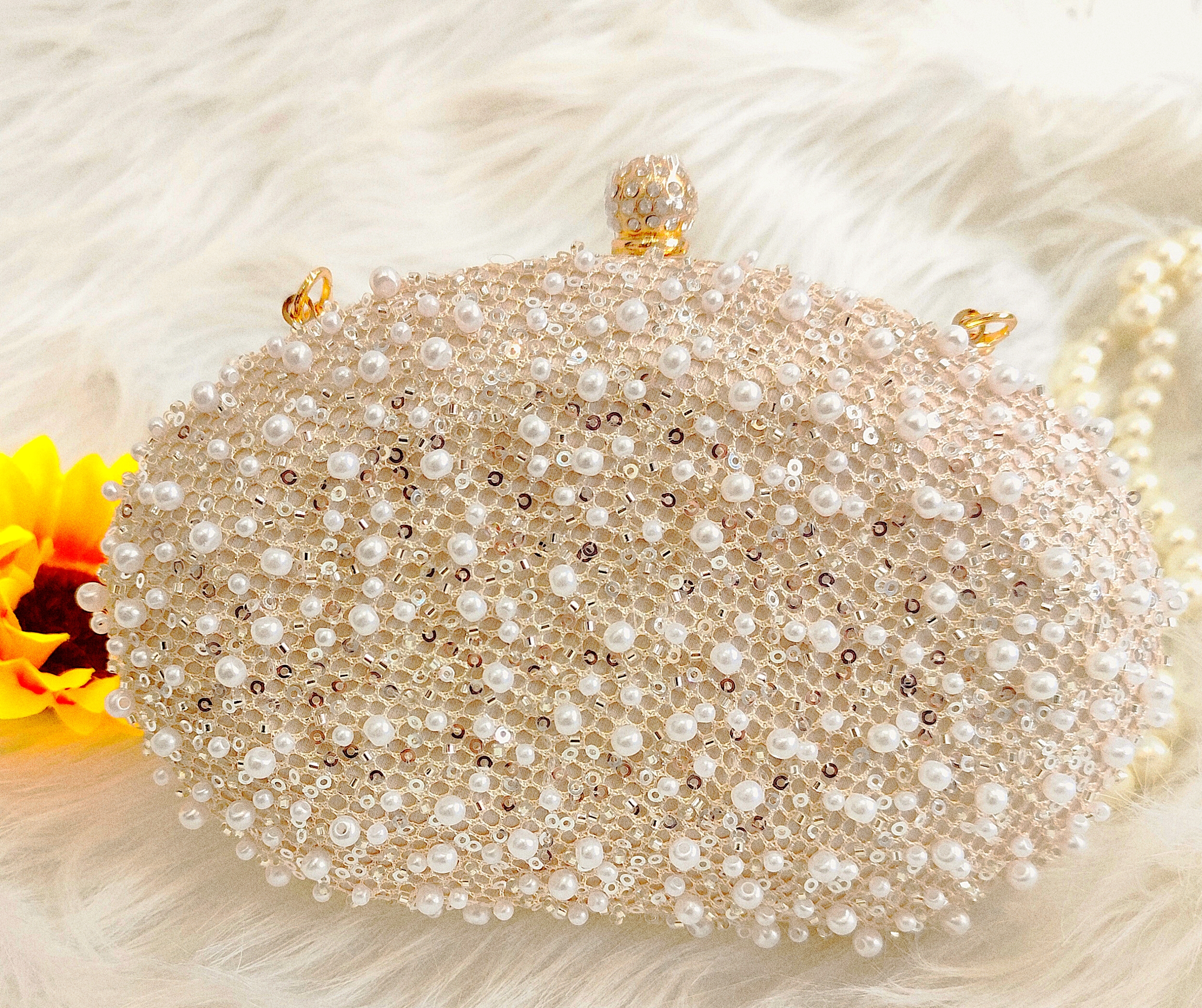 این کیف عروس زنانه مدل پرین برند سیندوخت با طراحی *مروارید و سنگهای درخشان*، انتخابی بینظیر برای شبهای خاص و مهمانیهای رسمی هست. رنگ *کرم نباتی* ملایم و شیک، با اکثر لباسهای شب ست میشه و ظاهری کلاسیک و مدرن به استایل شما میده.